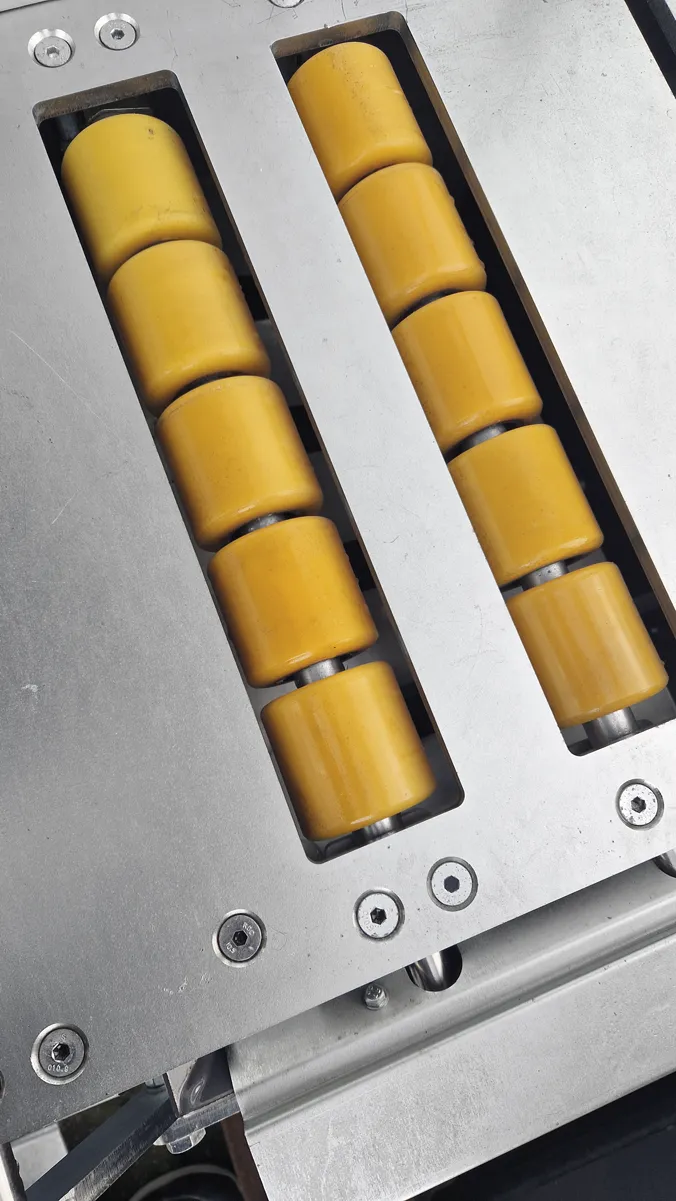 V: KR-mallissa on lyhyet PE-ohjausrullat, jotka tukevat kappaletta paikallisesti.
